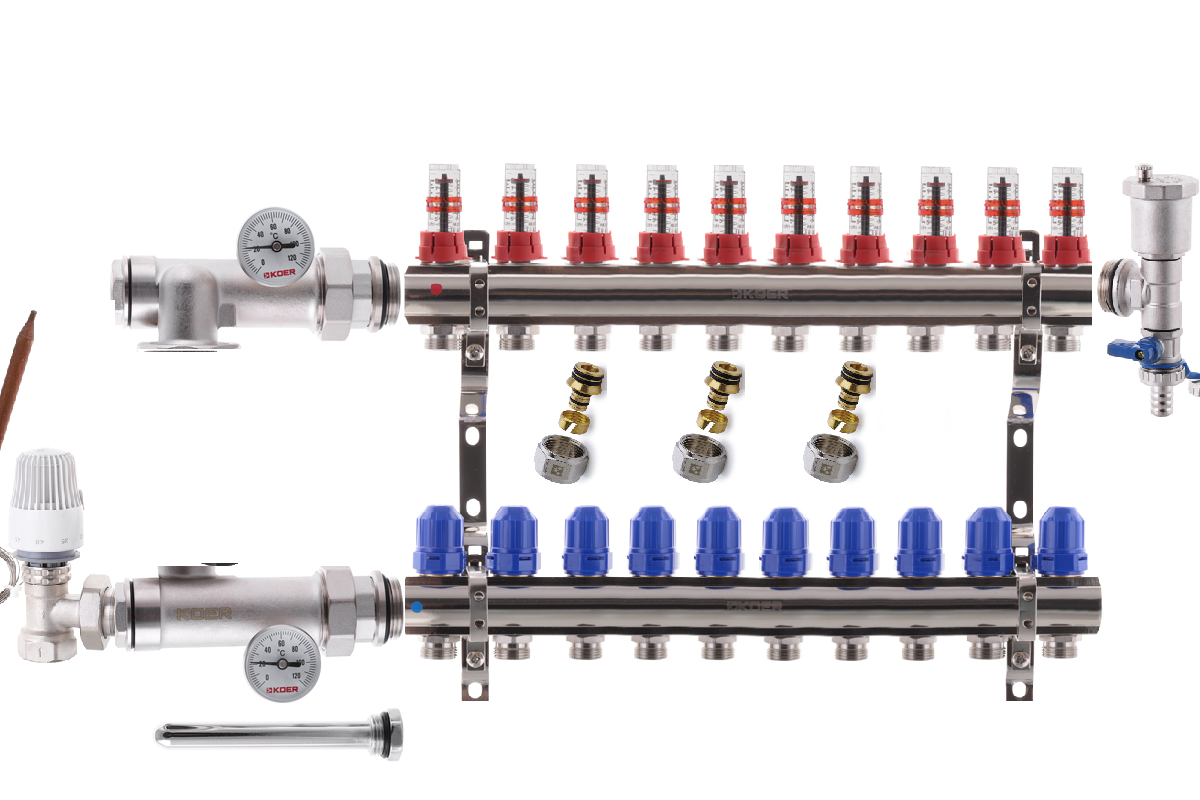 Колектор для теплої підлоги в складі на 10 контурів KOER