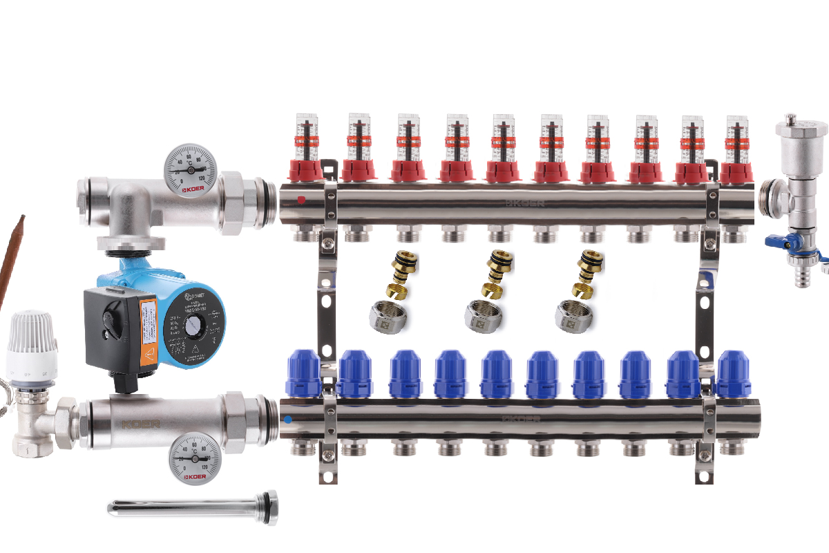 Колектор для теплої підлоги в складі на 10 контурів з насосом KOER